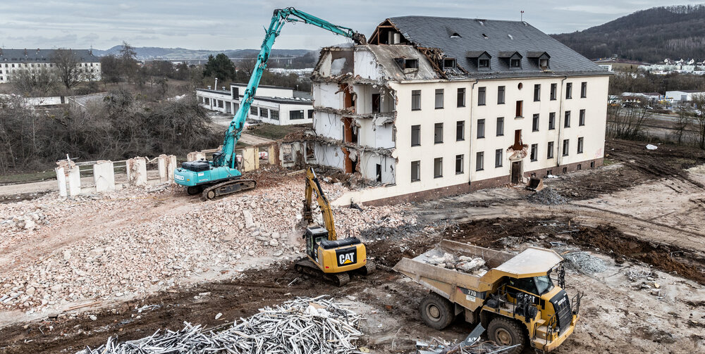 Nach und nach weicht ein Gebäude nach dem anderen für den Neubau eines Krankenhauses auf unserer Großbaustelle in Coburg. Anfallende Materialien…