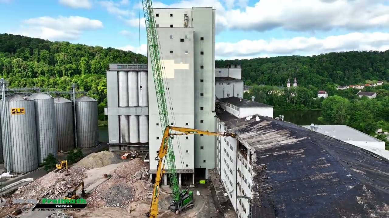 Erstes Ziel: Das 32 Meter hohe Lager- und Verwaltungsgebäude. Stein für Stein fällt hier die Vergangenheit – damit Zukunft entstehen kann.